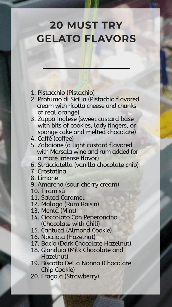 As many flavors as one’s imagination can think up, Gelateria Della Palma boasts having over 150 flavors. Based on my sampling of gelato flavors, here is my list of 20 must try flavors…